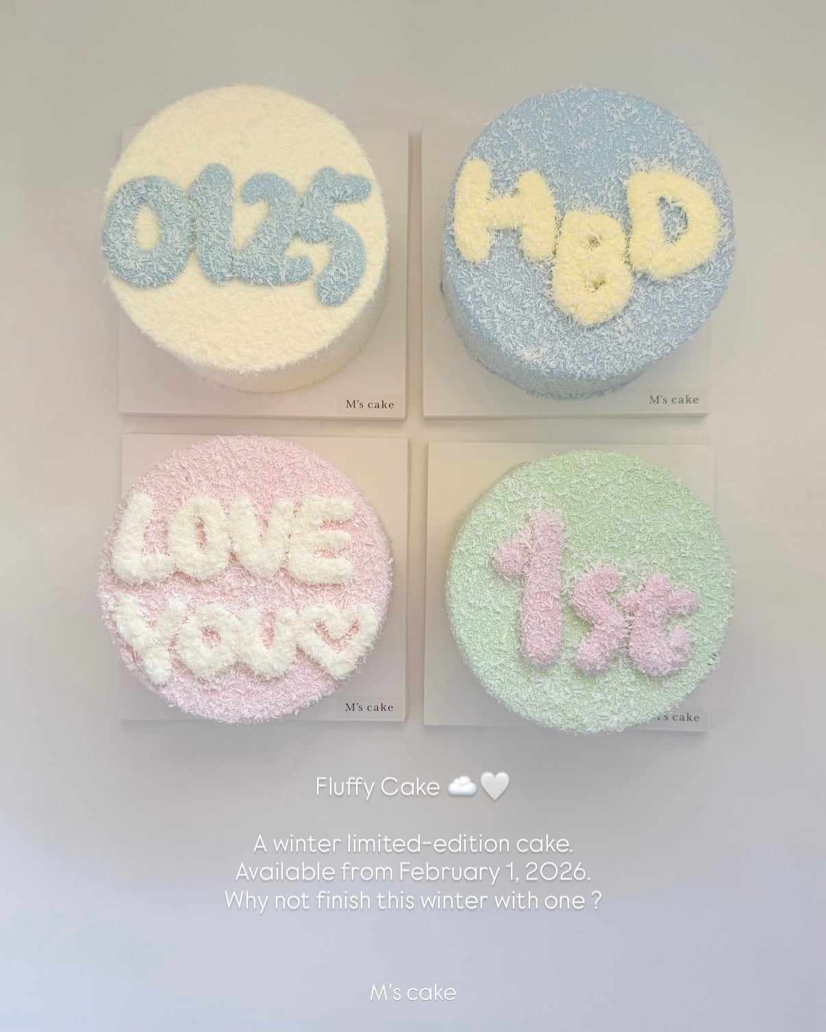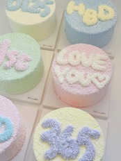 淡くやさしいカラーが目を引くFluffy Cake です。