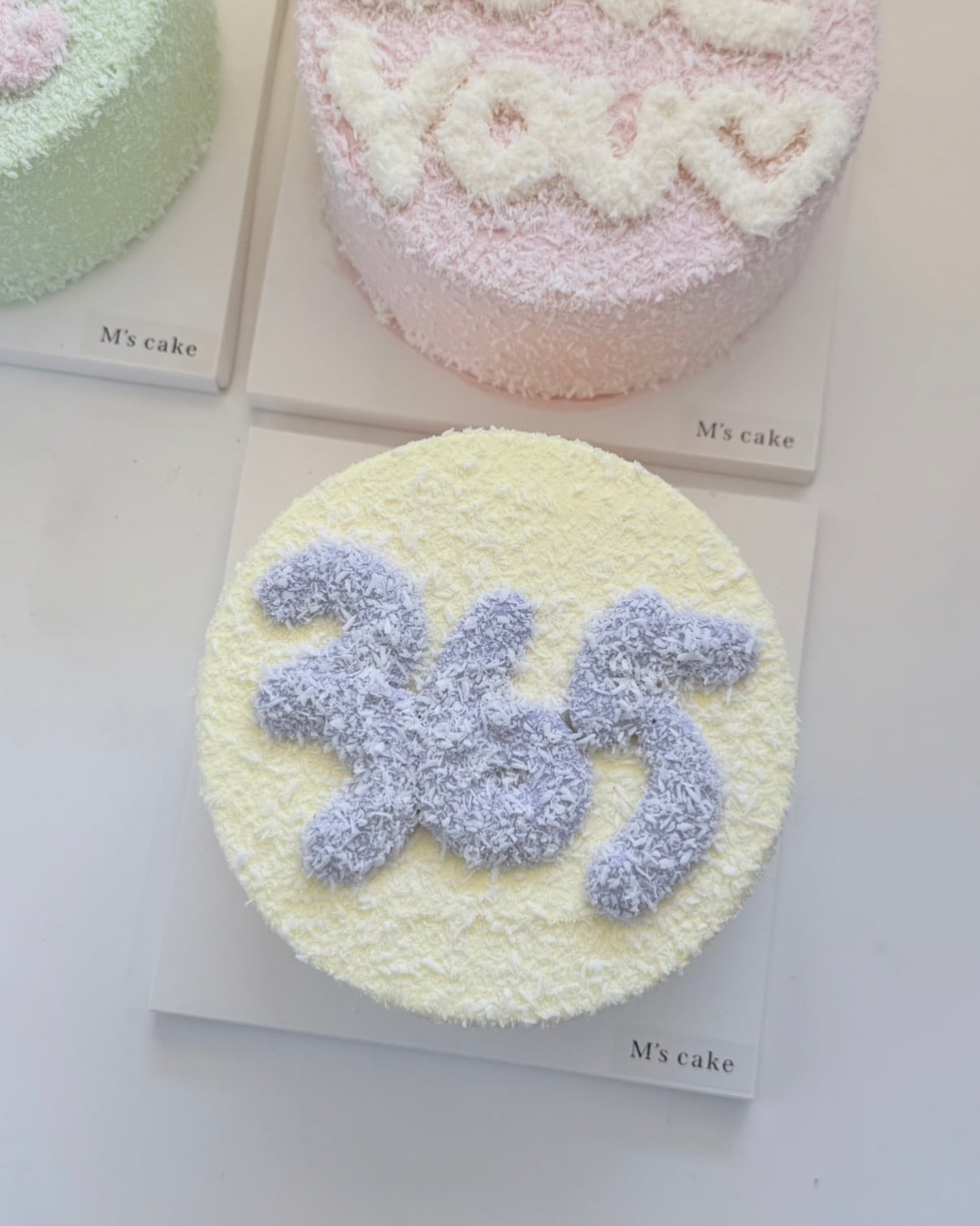 ※ ココナッツフレークをケーキにまぶしています。