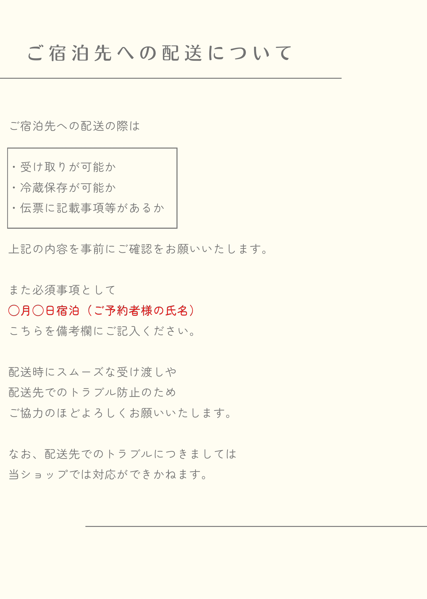 備考欄などに記載をいただいた場合でも対応ができかねます。