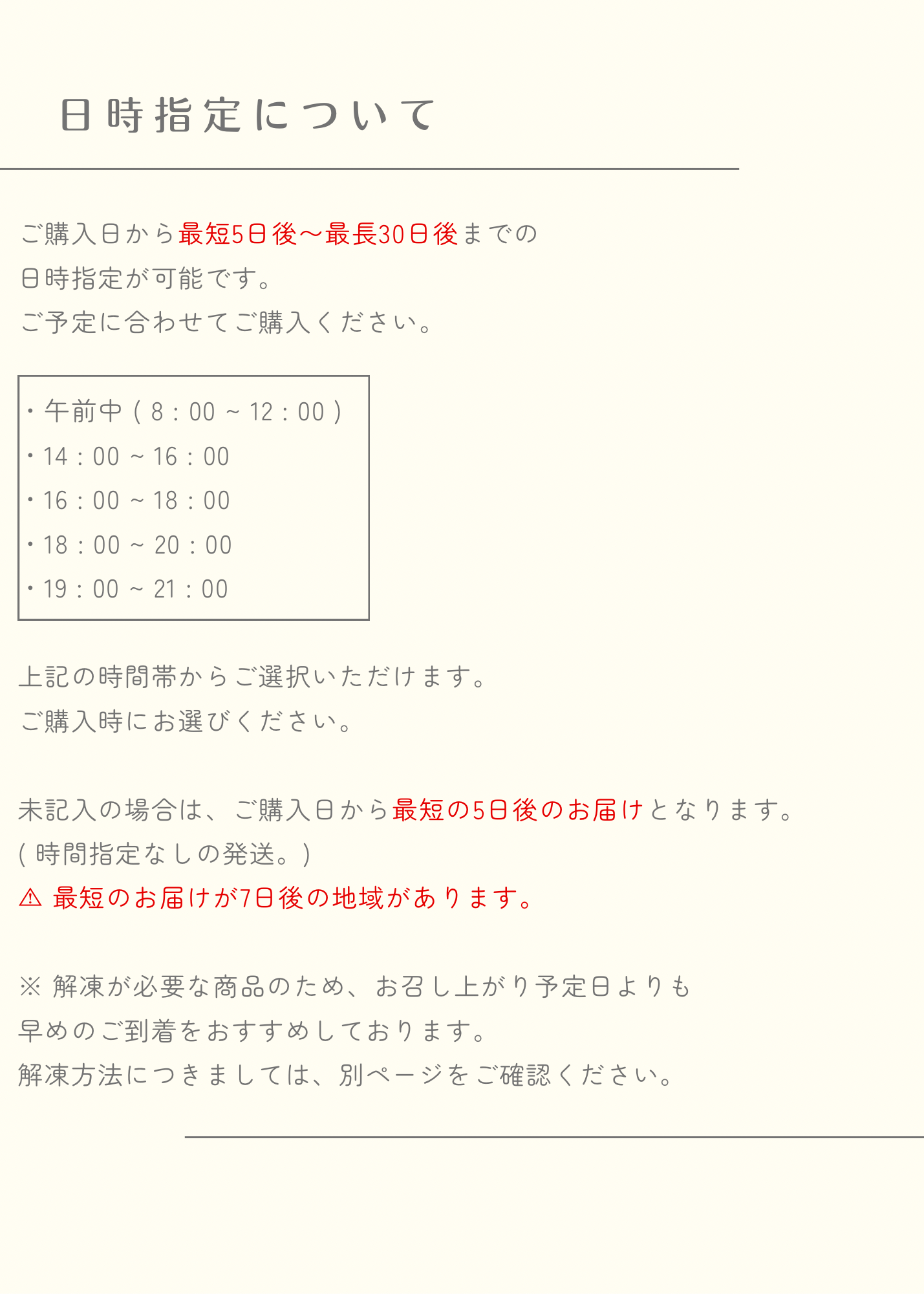 冷凍商品の特性上、